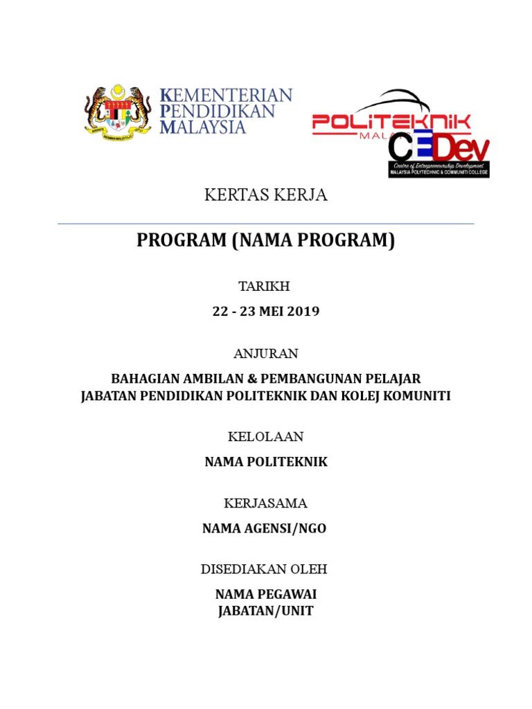 Contoh Kertas Kerja Program Universiti Anda Juga Perlu Senaraikan Tentative Program Secara Jelas Dan Juga Lengkap Dari Awal Sehingga Akhir Program from i0.wp.com Format kertas kerja pelan perniagaan. Anda juga perlu margin lembar kerja halaman dokumen word atau excel anda. Kertas kerja program sahsiah diri by suhaila omar 25850 views. Kertas kerja program pembentukan sahsiah diri. Download file dalam format.doc atau.docx micros. Published with reusable license by. Kertas kerja seminar ialah kertas kerja tentang sesuatu perkara untuk dikemukakan kepada sesebuah kumpulan atau orang ramai dalam sesuatu bengkel atau seminar. Kumpulan kertas kerja by kongres bahasa melayu sedunia (1995?