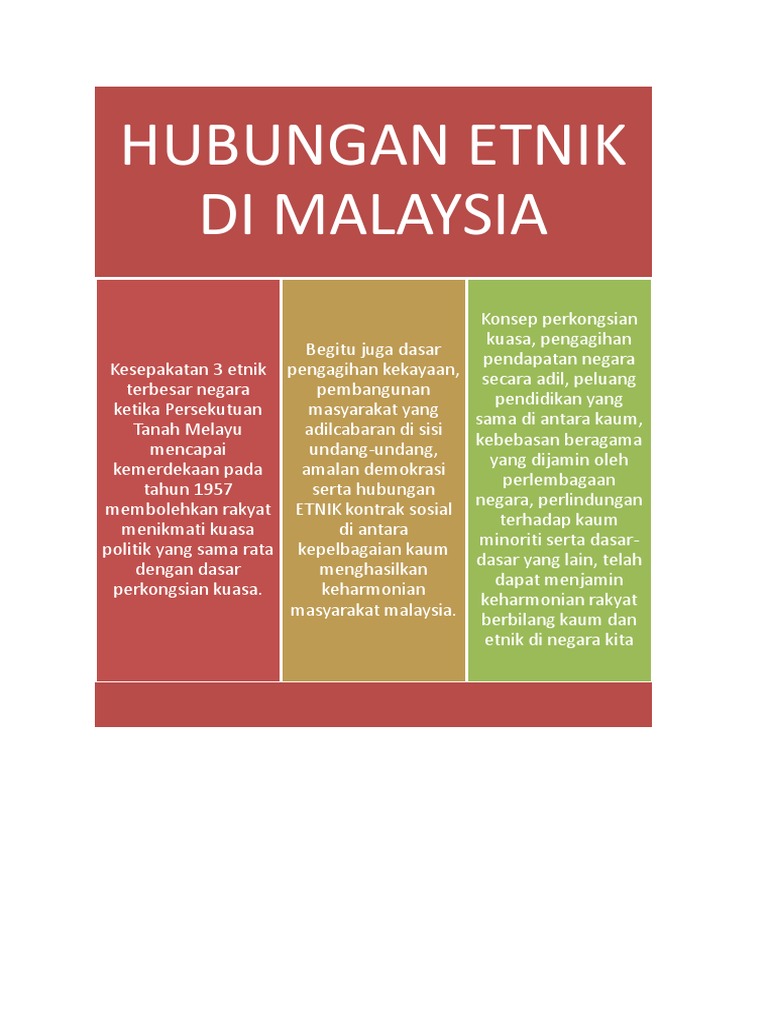 Pandangan Antara Pelbagai Kaum Dan Kesannya Terhadap Hubungan Etnik Di Malaysia By Haris Murshidi Azan from 0901.static.prezi.com Ikatan ikatan etnik dan kelas ke las di malaysia malaysia. ´ etnik selalunya didefinisikan sebagai satu kelompok manusia yang mempraktikkan atau mengamalkan budaya yang hamper sama, sama ada dari aspek adat resam, bahasa, pakaian atau kegaitan ekonomi. Tolak ansur ini bertujuan menjaga perasaan semua kaum dan etnik. Ini kerana ia dikaitkan dengan latar belakang sejarah di sebalik perayaan ini yang dijadikan rujukan kepada soal universal tentang manusiawi dan keadilan sejagat. Bibir nipis, kulit putih, mata besar, rambut lurus, tinggi, hidung mancung. Ini kerana, sosio politik setiap kaum bersifat perkauman. Malaysia merupakan sebuah negara yang mempunyai rakyat berbilang kaum dan etnik. Pakaian kaum lelaki menunjukkan pengaruh pakaian cina.