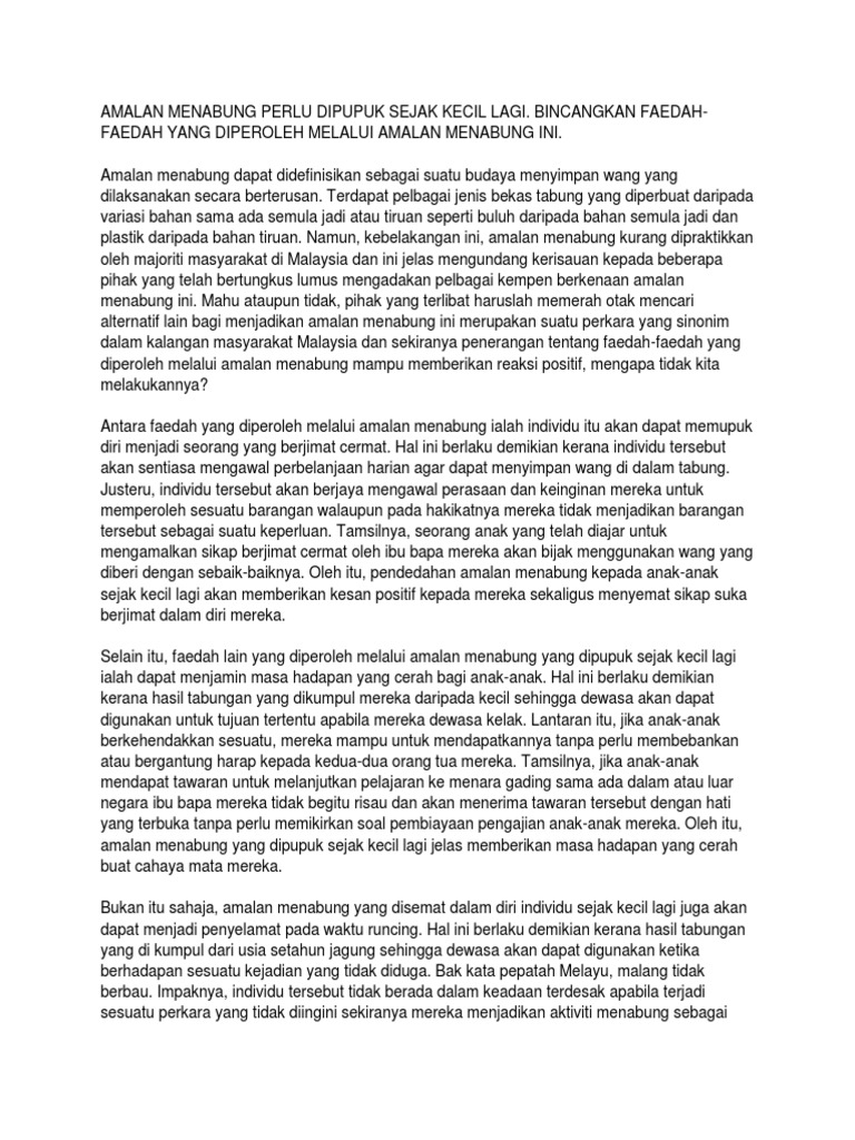 Penulisan Bahasa Melayu Spm Edisi 2020 Ilmu Bakti Buku Karangan Bahasa Melayu Spm Shopee Malaysia from cf.shopee.com.my Telefon pintar ialah gajet ini boleh dijadikan sebagai alat perhubungan. Faktor pembuangan bayi dalam kalangan remaja. 1 galakan daripada kerajaan dengan memberikan penerangan tentang kepentingan amalan ini. Setelah memahami beberapa hal di atas okey, mungkin itu dulu yang bisa kami sampaikan mengenai cara menabung untuk masa depan. Kampanye ini mengajak semua kalangan masyarakat, untuk memahami manfaat dari membeli saham secara rutin dan berkala bagi masa depan masyarakat dan negara tentunya. Ditambah lagi dalam ajaran agama, menabung termasuk dalam akhlak yang baik. Investasi emas tergolong stabil hukum menabung emas versi syariah sesuai fatwa mui menyatakan pembelian emas kredit lewat. at pada realitinya, memang tidak dapat dinafikan bahawa amalan menabung sebenarnya dapat memupuk sikap berjimat cermat dalam kalangan masyarakat di negara kita.